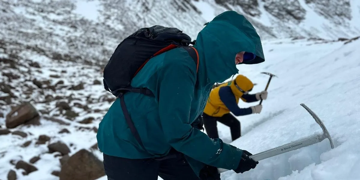 We tried this a few times, taking turns to slide head-first down the slope and using our ice axe to arrest the slide and prevent us from going further. Truthfully, the snow wasn’t perfect for this scenario as it would typically prevent us from going fast enough to practice, but it gave us the general idea and allowed us to focus on technique.