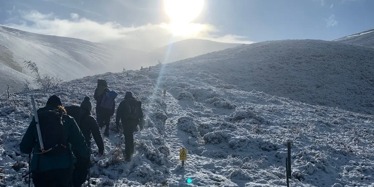 Once we’d gotten all our gear sorted, we started heading up into the freshly coated mountains.